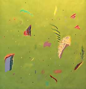 In the 50's and 60's, I was moving in several different directions; influenced by Cezanne and, later, Kandinsky, Jasper Johns and Tapies. I had started painting as a realist, but by the mid 60's my paintings were evolving into arenas of abstraction, visual events pieced together. Although I continued to draw information from the object, I found myself moving away from the horizon line and into the music of abstraction. Abstraction was the door to freedom for imagination, offering me unlimited avenues to explore.
