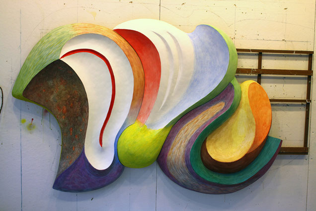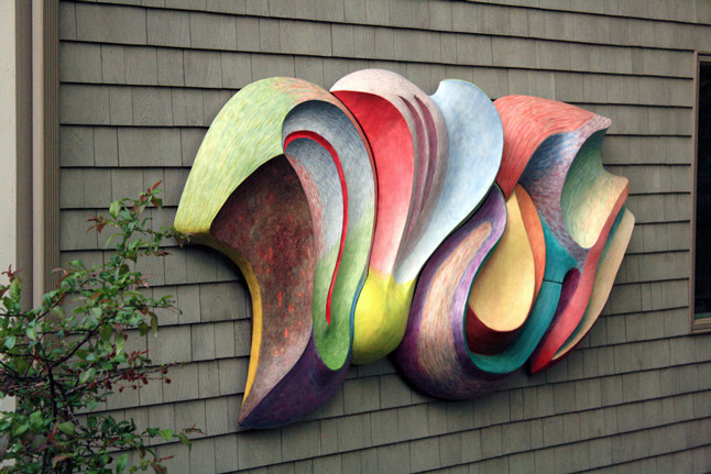JAZZ, in an unpainted state, was installed outdoors in October 2009 for a show at Featherstone Center for the Arts, Martha's Vineyard. In May of 2010 it was hung on the North exterior wall of my studio on Martha's Vineyard.